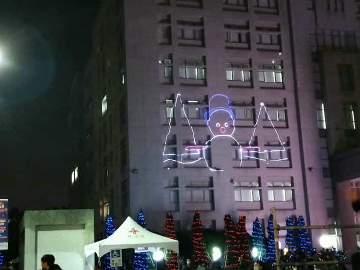 「2021耶誕貓裏‧菁彩降臨」苗廉政志工耶誕夜廉動同歡樂-苗縣府廣場除雪白聖誕樹、白色鐵塔、夢幻馬車及耶誕小屋等造景提供民眾拍照打卡,更利用數位燈光增添聖誕效果。
