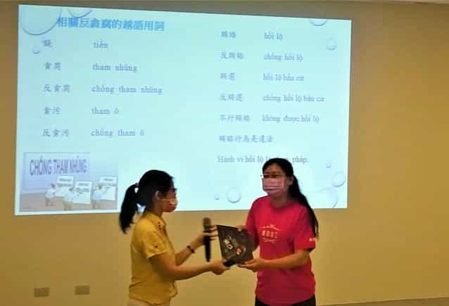 屏縣府廉政志工111年專業訓練強化服務力- 繪本倡誠信,越語話廉政 -廉政志工發言