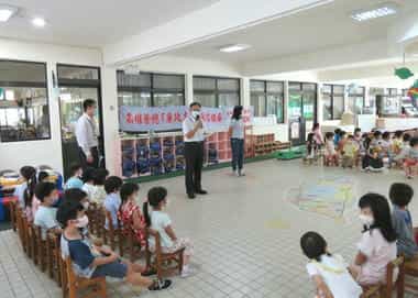 退輔會高雄榮總舉辦111年「校園誠信廉潔教育~廉政志工說故事列車」活動-廉政志工參與校園宣導實況。