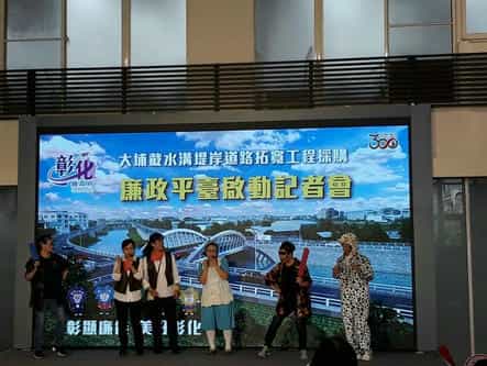彰化縣成立「大埔截水溝堤岸道路拓寬工程採購廉政平臺」,廉政志工表演揭開活動序幕