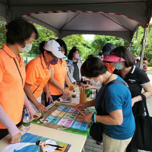 苗廉政志工協助辦理「111年濃情河濱·手作盆栽趣」廉政宣導活動-民眾參與「廉連看」創意小遊戲活動