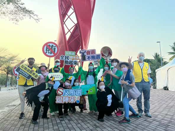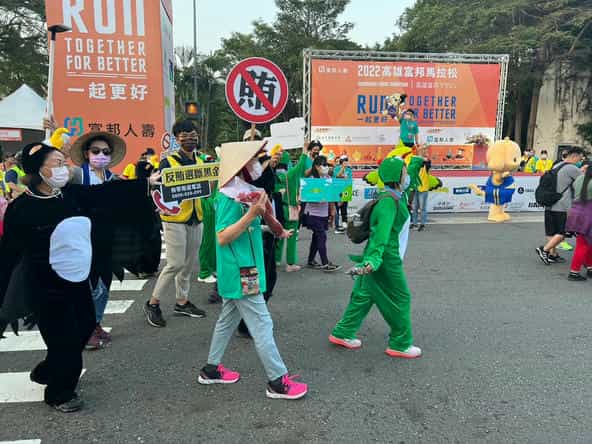 高雄市政府政風處廉潔寶寶及廉政志工參與富邦馬拉松,以創意變裝遊行宣導反賄選
