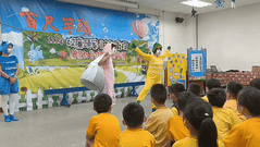 南投縣政府政風處廉政志工演出「新龜兔賽跑」戲劇,投入廉潔教育及反賄選工作-南投小隊廉政志工向嘉和國小學童進行「新龜兔賽跑」戲劇表演2