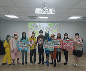 南投縣政府政風處廉政志工演出「新龜兔賽跑」戲劇,投入廉潔教育及反賄選工作-與嘉和國小得獎學童大合拍