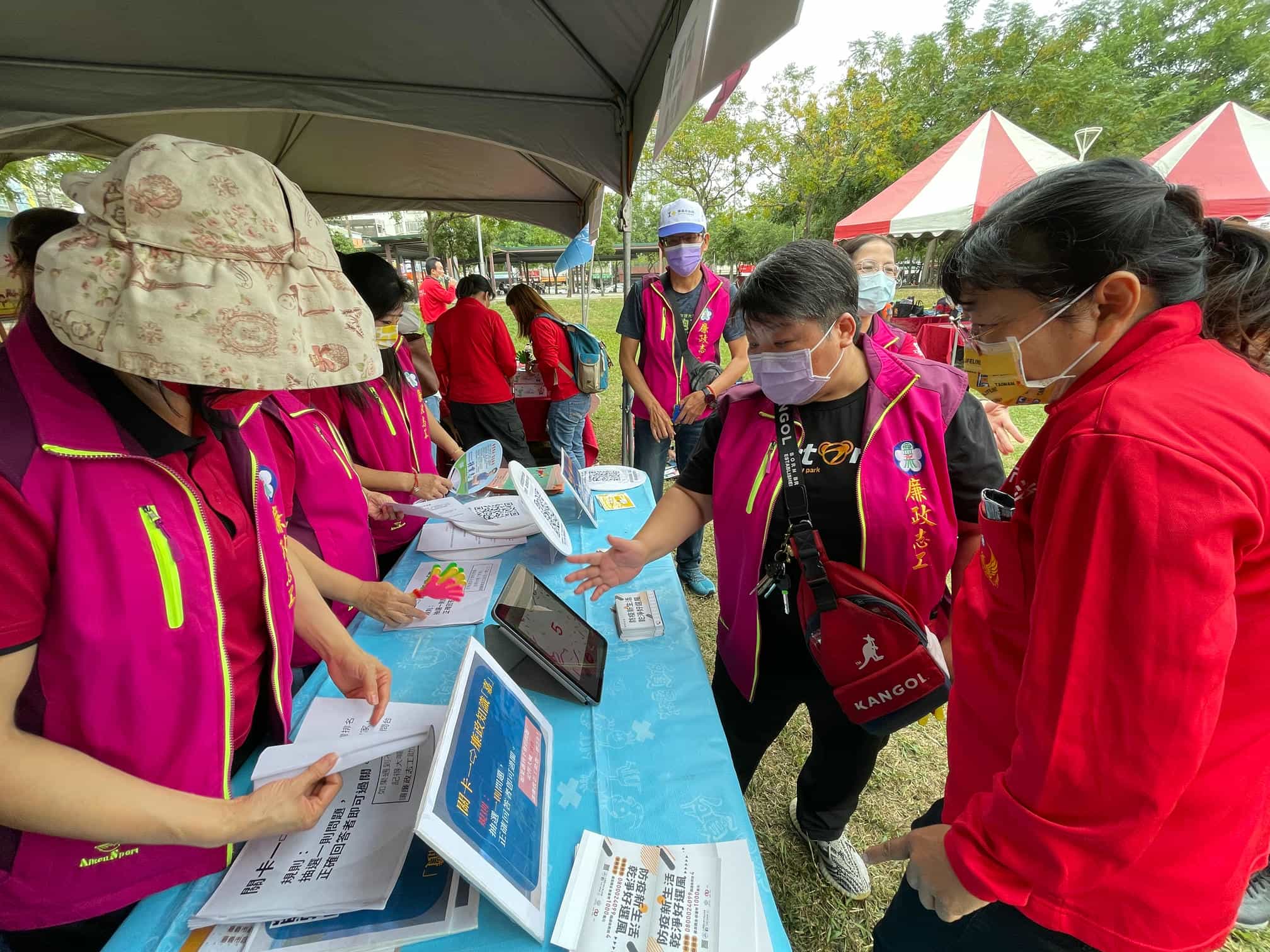 嘉市府廉政志工隊參與國際志工日活動,設計廉政有獎徵答遊戲互動熱烈-嘉義市政府政風處帶領廉政志工以有獎徵答方式宣導,民眾反應熱烈