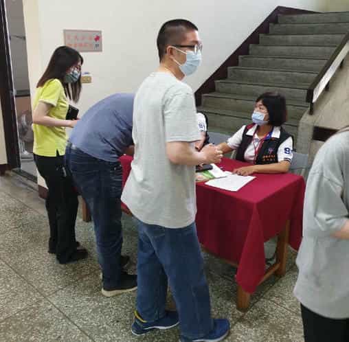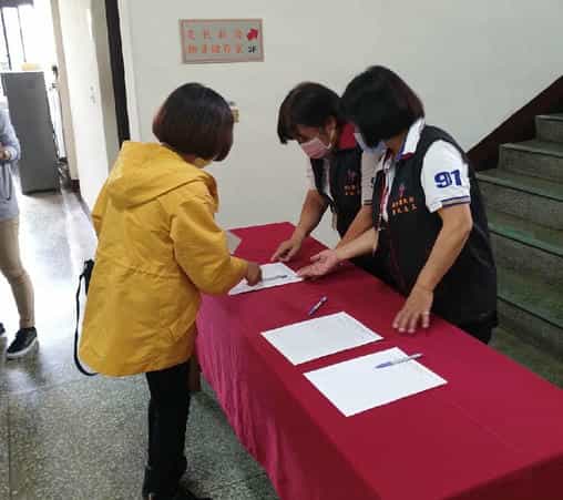 新竹縣政府政風處廉政志工協助竹北市公所「勞務採購風險控管全方位再進化」講習座談會宣導-新竹縣政府政風處廉政志工協助人員簽到、簽退等行政事項