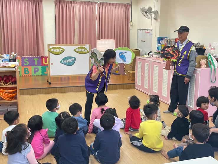 新竹市政府政風處攜手廉政志工辦理「廉手做燈籠」反貪宣導活動-孩踴躍表達對故事的想法