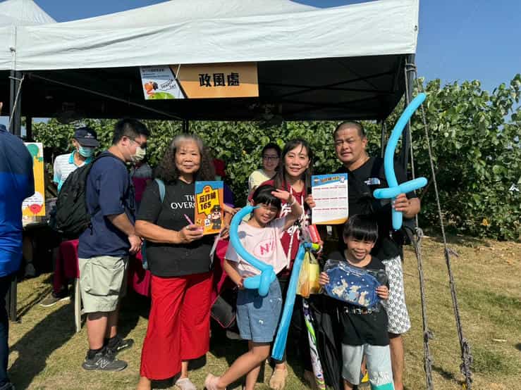 新竹市政府廉政志工協助辦理「2024國際風箏節」反貪宣導活動-志工與攤位合影