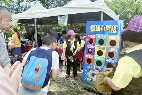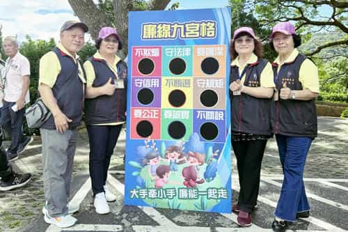 竹縣志工協助辦理「稻關西走走」,扎根廉潔誠信種苗於全民意識-廉政宣導結合九宮格趣味遊戲