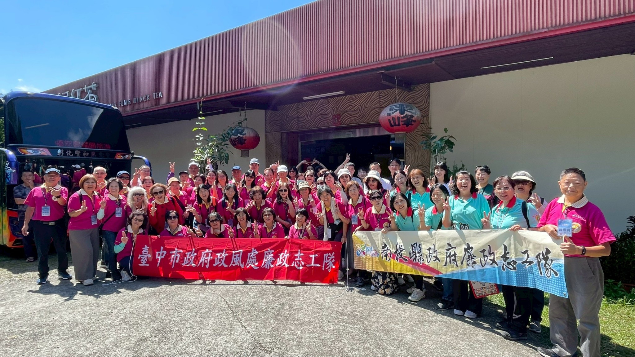 臺中市政府政風處114年廉政志工觀摩研習活動-臺中市政府政風處與南投縣政府政風處之廉政志工團相見歡。