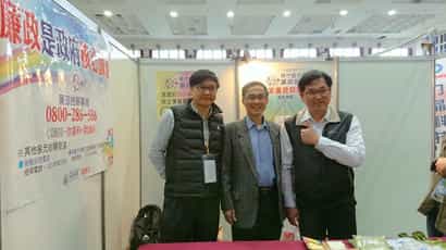 2018桃竹苗地區就業博覽會 政風室廉政志工舉辦廉政知識教宣活動-勞動部政風處處長林進丁、勞動部勞動力發展署政風室主任林木本及勞動部勞動力發展署桃竹苗分署政風室主任蔡文興合影