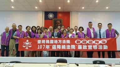 桃園廉政志工作伙來「逗陣繞法院」-由陳院長邦豪主持座談會,同時請審判長及相關主管列席,直接與候選國民法官及本府廉政志工面對面做雙向溝通與互動。
