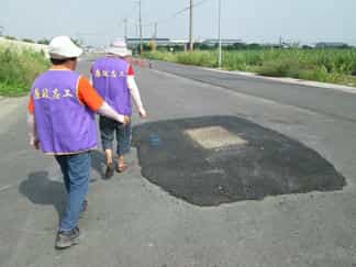 高雄市政府政風處廉政志工積極投入全民督工打造優質幸福城市-廉政志工協助檢視道路溝蓋狀況。