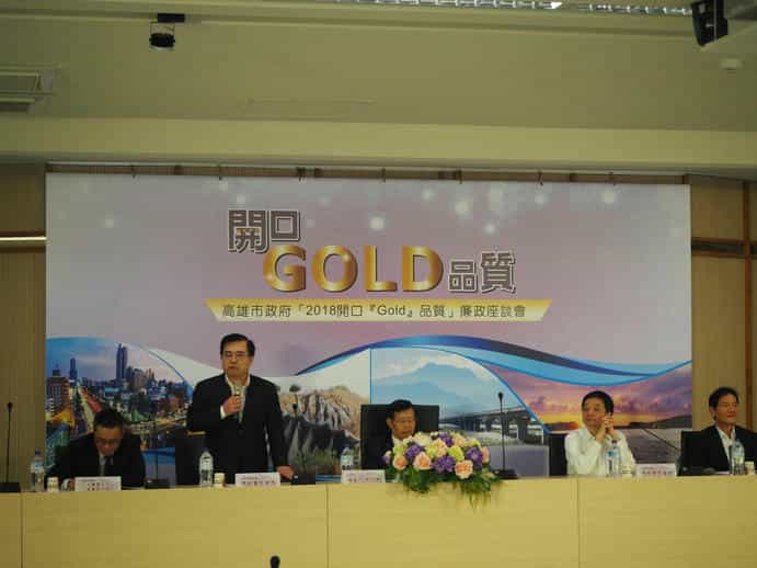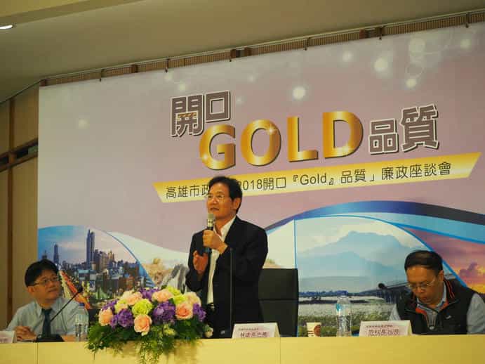 高雄市政府政風處廉政志工參與「開口『Gold』品質」廉政座談會,共同為公共工程監督把關-法務部廉政署陳副署長。