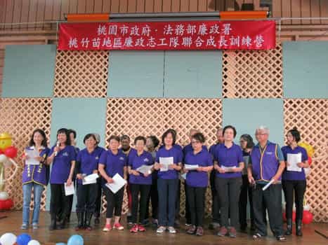 新竹市政府廉政志工隊參加「108年桃竹竹苗廉政志工成長訓練營」-新竹市廉政志工隊進行大合唱表演