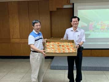 志工服務沒有最好只有更好-臺中廉政志工蒞臨雲林交流研習參訪-雲林縣政府政風處陳昭孔處長致贈伴手禮,臺中市政府政風處廖建一主任秘書代表接受