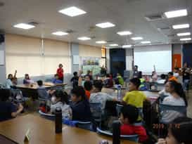 新北市政府樹林垃圾焚化廠108年度敦親睦鄰計畫-暑期環境教育體驗營-於志工宣講完校園誠信文創小說後,學生踴躍參與有獎徵答