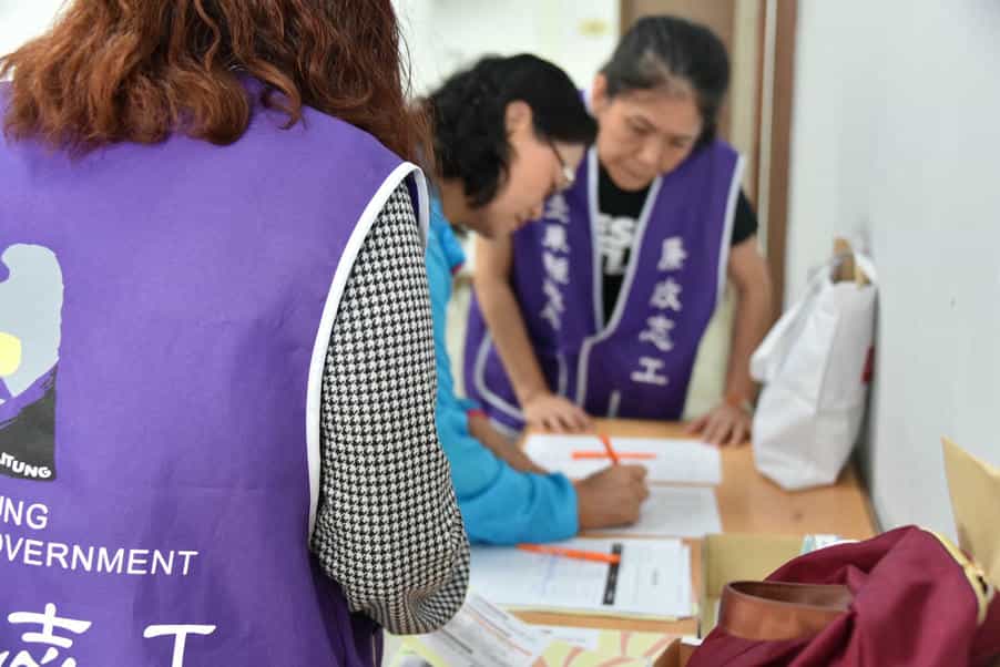 臺東縣政府政風處廉政志工協助辦理監察院108年公職人員利益衝突迴避法專責人員宣導說明會-廉政志工協助與會人員辦理相關簽到手續。