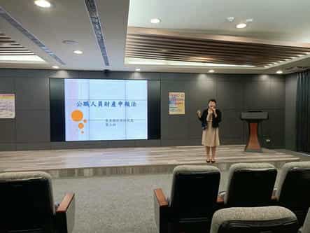 廉政志工協助兼辦政風人員政風法令宣導研習-由林孟燁辦事員說明公職人員財產申報業務