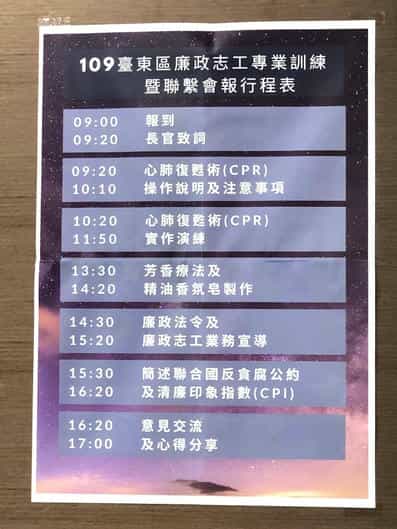 109年臺東區廉政志工專業訓練-活動行程表