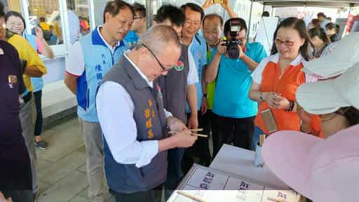 苗栗廉政志工協力辦理「貓裏響應海洋日環保減塑海底垃圾清除總動員」社參宣導活動-縣長蒞臨活動攤位