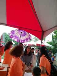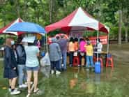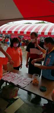 「水漾三灣 歡喜桐遊」苗廉志工廉手桐遊宣導-活動現場雖下雨但民眾仍熱烈排隊參與