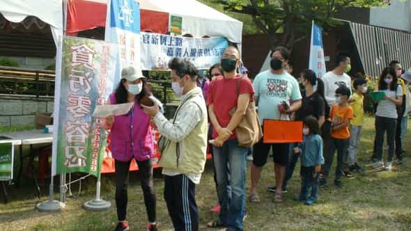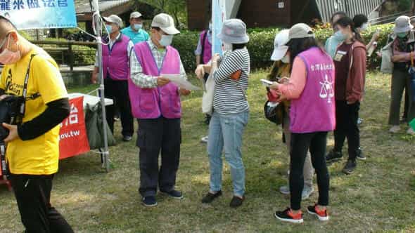 臺灣嘉義地方法院廉政志工於「110年植樹月『國土綠網 廉結森存之道』」活動協助推廣企業誠信理念暨國民法官制度。-廉政志工協助引導民眾參與活動