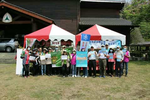 臺灣嘉義地方法院廉政志工於「110年植樹月『國土綠網 廉結森存之道』」活動協助推廣企業誠信理念暨國民法官制度。-工作人員及廉政志工合照
