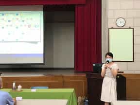 「院檢廉心‧攜手相廉」,高雄地方法院110年聯合廉政志工專業訓練圓滿完成-圖為本院蔡書瑜審判長細心解說即將上路之國民法官制度