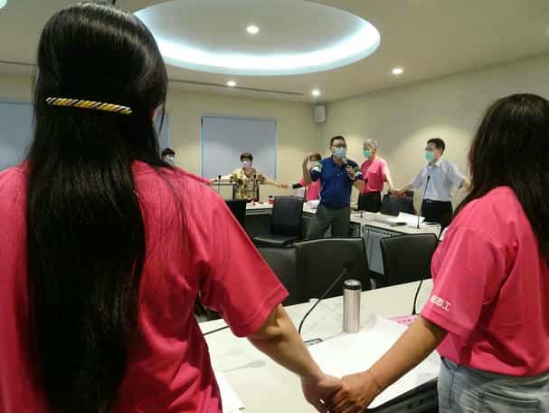 廉政零距離,高屏廉政志工「童心協力」開拓廉政心田-屏縣府政風處陳建利處長與廉政志工心手相廉