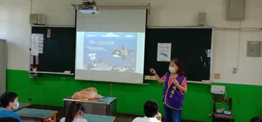 新竹市政府辦理下半年童趣相「廉」~校園繪本宣導活動-廉政志工介紹鯨豚種類